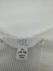 This Time and Tru cardigan for women in size XL is a classic piece for any casual occasion. The white solid pattern is elegant and versatile, while the long sleeves and open style make it comfortable and easy to wear. Made of polyester and rayon, the material is lightweight and soft, ensuring a pleasant fit. The cardigan is designed with a regular fit and size type, perfect for any women's department. The brand, Time & True, is known for its quality and style, making this sweater a great addition to any wardrobe. The sweater is manufactured in China and features an open style, making it perfect for layering over any outfit. *Check the images above for the flaws and measurements of the item.