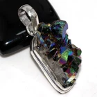 Titanium Druzy 925 Silver Plated Gemstone Handmade Pendant 1.6" JW