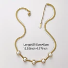 Titanium Steel Necklace Snake Chain With White Freshwater Pearl 18K Gold Plated