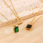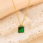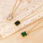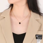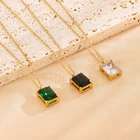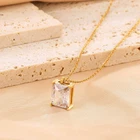 Titanium steel square glass pendant necklace gold women's collarbone chain