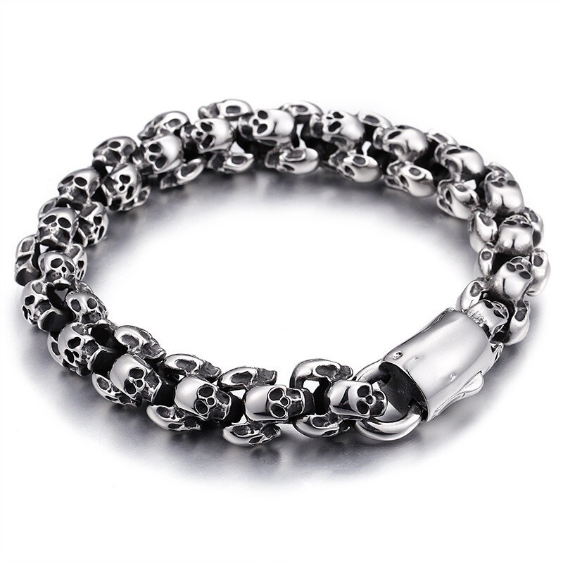 Titanium steel vintage skull bracelet and necklace set for men