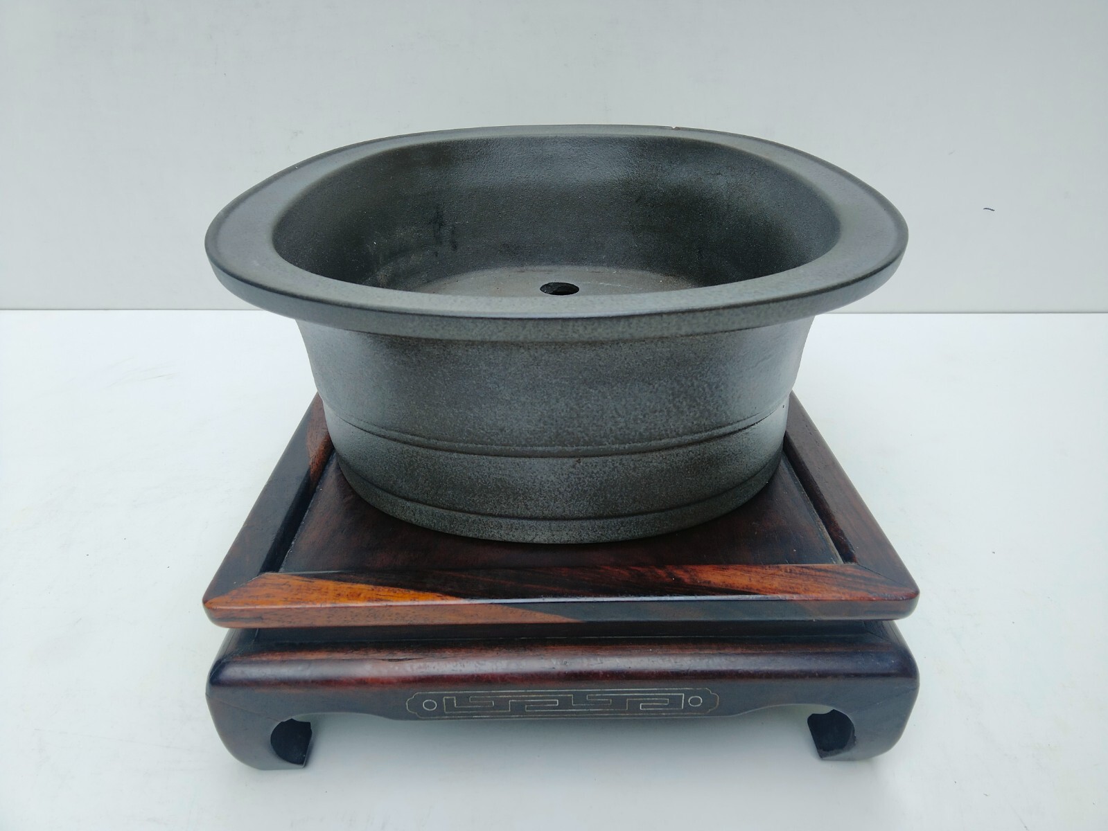This bonsai pot is absolutely stunning—the deep oval shape and natural unglazed finish give it a classic, elegant look. Despite the small chip mentioned, it arrived in great condition and feels incredibly sturdy. Perfect for showcasing a beautiful bonsai tree. Shipping from Japan was smooth, and the size is just right for larger plants. Very happy with this purchase!