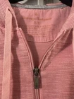 This is a Tommy Bahama women's Tobago Bay full-zip hoodie in cabana pink, size small. The hoodie features a solid pattern with long sleeves, made of a blend of cotton, pima cotton, and TENCEL™ Lyocell fabric. It has embroidered accents, a logo, a hood, full zip closure, contrast-stitch trim, pockets, and is designed in a regular fit style suitable for travel and casual occasions.