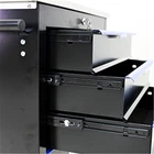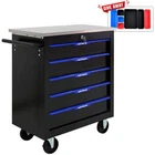 Features and Details: This assembly trolley has 4 steering wheels, 2 of which with parking brakes, so you can move the trolley freely in the garage, but also stop in one place. The storage surface provides additional space for storing and arranging tools you often need. The opening and closing of the drawers of the tool cabinet is very gentle thanks to the ball-bearing drawers. The robust and powder-coated steel construction is used for high wear resistance. This is a set of cabinets, can use a round hook at the bottom of the table to connect another tool car, thus forming a combination. Specification: Color:Black+Blue Material:Cold Rolled Steel Surface Finish:Powder Coating Casters:4" Casters (2PCS with brake and 2PCS without brake) Product Size (with wheels and countertops): 25.91*13.58*26.46INCH Package Size:27.36*15.16*28.94INCH Size (with countertops):25.91*13.58*25.98INCH Net Weight:58.86LBS Gross Weight:65.7LBS
