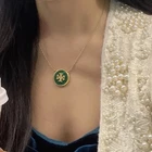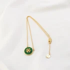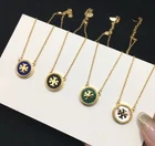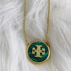 Tory Burch Double T Classic Lady Necklace Simple Elegant Green