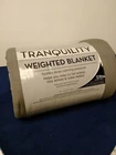 New Tranquility Weighted Blanket 12 Lbs 48X72 Gray Calming Pressure * Fabric: 100% Polyester * Inner Lining: 100% Polyester * Content: 92% Glass Beads, 8% Polyester Fiber Batting * Spot Clean Only * Helps Calm and Comfort Those Who Have Trouble Sleeping