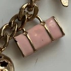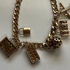 This stunning gold curb chain necklace is the perfect accessory for any travel enthusiast. The necklace features a variety of travel-themed charms including a car, suitcase, and airplane, all hanging from the chain in a stylish and unique way. The 18" length makes it a perfect fit for anyone, and the no-stone design ensures that this necklace can be worn on any occasion. Whether you're jetting off to a new destination or just looking to add a touch of adventure to your outfit, this necklace is sure to impress.