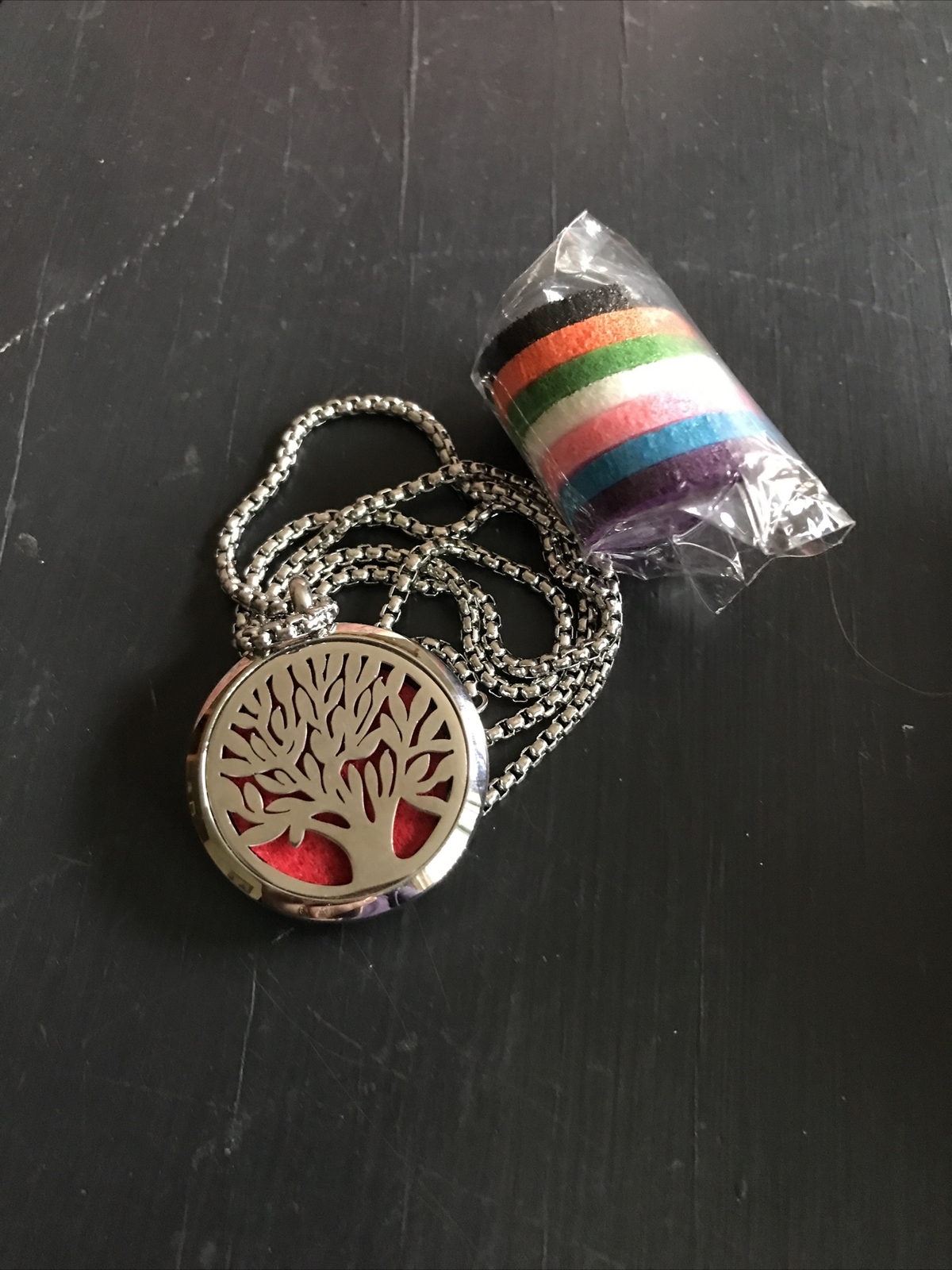 Essential Oil Diffuser Necklace Tree of Life Locket Pendant Silvertone.