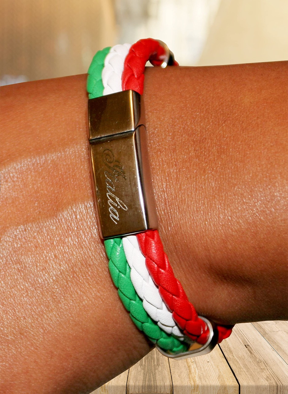 Description ✅ 8” Braided leather in green, white, and red ✅ Italia engraved on the stainless steel clasp Product Features: ✅ SHOW YOUR ITALY PRIDE – enjoy wearing this 8” braided leather bracelet in Italy flag colors ✅ Tricolor – green, white and red – Italian flag colors! ✅ Nice thoughtful and practical little gift ✅ Stainless steel clasp engraved with “Italia” ✅100% SATISFACTION GUARANTEED! We know you will love our product, but if you are not satisfied for any reason, we will refund your money with no questions asked.