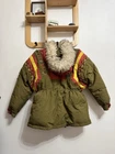 Stay warm and stylish this season with this vintage Triple F.A.T. Goose puffer jacket. The solid green color and hooded design make it a trendy addition to your wardrobe. The jacket is made of durable polyester and features a quilted and insulated design, perfect for fall, winter, and spring. This mid-length jacket has a regular fit and long sleeves, making it comfortable for everyday wear. The jacket is perfect for casual occasions and features a zip closure for added convenience. The Triple F.A.T. Goose brand is known for its quality and this jacket is no exception. Stay warm and fashionable with this must-have jacket.
