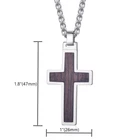 Tungsten steel is known for its super hardness, nothing other than a diamond can scratch a tungsten steel pendant, great material for long lasting jewelry without any fading or scratches Tungsten carbide has a density 1.5 times that of regular stainless steel, providing a more pronounced drape and better wearing experience. Good choice for mens cross necklace The tungsten cross pendant is nicely polished, has smooth touching sense. Super hardness and density also makes the tungsten pendant stand out in both texture and appearance, making it an ideal choice for those who value quality and style Tungsten steel cross pendant with wood inlaid. The warmth of natural wood meets the strength and sleekness of tungsten steel, offering a unique and timeless piece of jewelry that blends nature with modernity Package with branded velvet gift pouch, comes with 24" stainless steel link chain. A good gift for men, suitable for Birthday, Anniversary, Christmas, Valentine's Day, etc