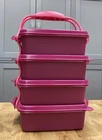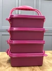 Tupperware CrystalWave Goody Box Container Set with Handle-Color Choice-NEW-SHIPPING INCLUDED Six sets available 3 of each color. The containers are each 3.5 cups/850ml-The price is per set purchased. The containers are microwave safe. Perfect for leftovers, lunches or transporting food to an event. Look at the pictures and ask any questions before bidding. *Check out our other auctions for lots of other neat items! * If you choose to bid and it is part of the Global Shipping Program please be aware that you will also be charged fees from Global Shipping that have nothing to do with me.