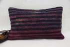 Turkish Kilim Pillow, 12"x20" Purple Cushion, Turkish Pillow