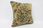 Turkish Kilim Pillow, 16"x16" Beige Cushion, Throw Pillow Cover, Body Pillow