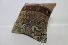 Turkish Kilim Pillow, 16"x16" Brown Pillow Covers, Designer Pillows