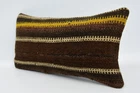 Turkish Kilim Pillow, Kilim Pillow Cover, 8"x16" Brown Pillow, Throw Pillow