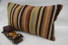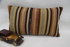 Turkish Pillow, Kilim Pillow Covers, 12"x20" Brown Pillow Case