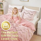 Return Policy Fast Delivery Trusted seller Twin Comforter Set for Girls - Cute Pink Bedding Sets for Twin Size Bed - 3 Piece Set for Teen Girl - Includes 1 Rose Gold Comforter, 1 Decorative Pillow, 2 Pillow Cases - All Seasons Warm Product Description PERFECT FOR KIDS ROOM: This adorable pink comforter features a stunning metallic gold geometric print, perfectly complemented by a solid pink reverse and matching shams. The cozy and shiny bed set is perfect for kids and twin beds, making it an ideal choice for child's room. GOLDEN GLAMOUR: With its blush and gold striped print, this comforter set brings a touch of trendy style to any bedroom. The eye-catching metallic design adds a fashionable flair to the decor, creating a captivating and chic ambiance. CUTE AND CHIC: The comforter set combines modern trends with a girly touch, perfect for the fashion-forward girl. Its chic metallic design adds a touch of sophistication and glamour to any space, making it a must-have for a stylish bedroom. THOUGHTFUL GIFT: This trendy comforter set is the perfect gift for any girl who values both comfort and style. Its fashionable design and trendy colors make it a thoughtful and stylish gift for any girl looking to elevate her living space with a touch of glamour. KIDS STYLE: Not only does this comforter set provide warmth and comfort, but it also adds a stylish touch to any bedroom decor. It's suitable for everyday use and can effortlessly complement various interior styles, making it a versatile addition to any little girl's room. Shipping Returns Payment Shipping Shipping is FREE to all addresses other than APO/PO boxes in the lower 48 states. All our stock ships from US-based warehouses. Shipped via USPS or UPS (depending on location and package weight) Unless stated otherwise, all orders will ship within 24-72 hours of your payment being processed. Check our feedback to see the great reviews of FAST shipping we offer. Returns Seller does not accept returns Payment We currently accept payment via eBay managed payments only. Once payment is cleared, we will dispatch your shipment within 1-3 business days. Please refer to the "Shipping" tab for more information regarding shipping speed to your destination.