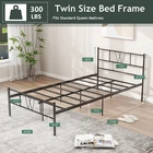 Made of durable steel with a sleek black finish, this metal bed frame is simple in style but sturdy in structure. Featuring strong metal side rails and 9 legs for stability and durability, as well as a center rail and slats for added support, this bed provides comfort and convenience for years to come. The frame is 12 inches off the floor to provide plenty of storage space underneath, perfect for hiding away all your clutter. It's totally noise-free and comes with rubber caps on the slat ends to prevent noise and scratching on your floor. There are no sharp edges to worry about running into. Backed by a worry-free 5-year limited warranty, this bed frame comes with everything you need for quick assembly and requires no box spring. You can sleep soundly and wake up refreshed and ready to take on the day. Quick View About this [Twin Size Metal Bed Frame] Sleek black finish with Headboard &Footboard Constructed to be sturdy, avoiding movement and squeaking Designed to offer robust support for most Easy to assemble and requires no box spring Features ample below-bed storage space With anti-slip foot pads preventing scratching There are no sharp edges to worry about running into Worry-free 5-year limited warranty A good option for budget shoppers More Details About this [Twin Size Metal Platform Bed Frame with Headboard and Footboard, No Box Spring Needed] [Sleek Design]: The mix of straight lines create a grand and elegant style in any master suite or guest bedroom. The gently curved design of bed frames prevent accidental bumps and bruises. This metal platform bed can easily fit mattresses of varying thicknesses. [Sturdy Foundation]: This bed frame is constructed completely of a powder-coated metal frame that includes side rails, many metal slats and 9 support legs, with a high weight capacity of 800 lb, offering sufficient firmness and stability for a peaceful night’s sleep. You do not need a clumpy box spring. [12'' Under-bed Storage]: With a generous 12 inches of clearance space beneath the bed base, you’ll have ample room to store items such as books, quilts, pillows, clothing, rolling drawers and more. [Quick Assembly] : With our expertly engineered and stylish designs, you can have your bed frame set up in no time, giving you more time to relax. Clear instructions, useful tools, and numbered parts are provided to assist you in completing the setup quickly and effortlessly. Product Dimensions (L x W x H) Twin: 75" L x 38" W x 12" H (600 lb. weight capacity) Full: 75" L x 54" W x 12" H (700 lb. weight capacity) Queen: 80" L x 60" W x 12" H (800 lb. weight capacity) King: 80" L x 76" W x 12" H (800 lb. weight capacity)