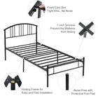 Return Policy Fast Delivery Trusted seller Twin Bed Frame,Twin Metal Platform Bed Frame with Headboard/Footboard/Mattress Foundation/Under Bed Storage/No Box Spring Needed Product Description Metal 【Sturdy Bed】With 13 pcs Updated Heavy Duty Metal Slats, 6 pcs Side rails and supporting legs, this Twin size bed frame is capable of holding up to 400 lbs,Providing your mattress with strong support. 【Elegant Headboard and Footboard】This full bed features a curved headboard and straight footboard that resembles a castle. Suitable for many styles of home style,add more vitality to your room. 【Under Bed Storage】This full offers 12.4 inch of under-bed clearance, providing ample storage space for clothes, toys, and more,helping to keep your bedroom tidy and organized. 【Compatible With Mattress】Compatible With Mattress Size:75" x 35", Suitable for memory foam, latex, hybrid, or spring-type mattresse. 【Noise Free & Anti-slip Design】Reinforced corner braces can effectively improve structural stability and prevent squeaky noise. The side rails of this metal bed frame are carefully designed to be higher than the inserted slats, preventing the mattress from sliding noticeably. 【Easy Assembly】Each package comes with a clear and detailed instruction, an adult can handle in under an hour by following the installation. Shipping Returns Payment Shipping Shipping is FREE to all addresses other than APO/PO boxes in the lower 48 states. All our stock ships from US-based warehouses. Shipped via USPS or UPS (depending on location and package weight) Unless stated otherwise, all orders will ship within 24-72 hours of your payment being processed. Check our feedback to see the great reviews of FAST shipping we offer. Returns Seller does not accept returns Payment We currently accept payment via eBay managed payments only. Once payment is cleared, we will dispatch your shipment within 1-3 business days. Please refer to the "Shipping" tab for more information regarding shipping speed to your destination.