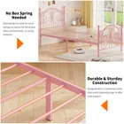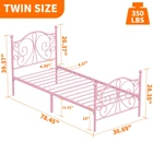 Butterfly Pattern Design: This twin bed features by its headboard and footboard with butterfly pattern. An elegant adding for any bedroom.Ideal for kids, teenagers and adults. Bed frame dimension: :78.45" x 36.69" x 39.37" (L*W*H), no mattress comes Ample Under-bed Storage: The metal platform bed with 11 inch under-bed clearance provides plenty of space to store toys,boxes and more. Maximize your space utilization and keep your space tidy and organized. Strong & Sturdy Metal Frame: The reinforced bed frame structure is consisting of 15 metal slats and 6 supporting legs to provide strong support and ensure the durability of the frame. No box springs needed, keeping your mattress fresher longer Anti-slipping&Noise-free Design:The embedded design frame can secure the mattress in place and prevent it from slipping.Each supporting leg is equipped with a noise-free design of silicone pads,creating a peaceful sleeping environment. Easy Installation: All parts and tools are included, easy to assemble with detailed instructions for a quick and hassle-free setup within 60 minutes to save your time.Maximum support 350 lbs.