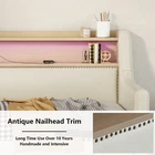 Twin Size Daybed w/ Drawers, Upholstered Bed w/ Charging Station and LED ,Beige Features Stylish and Elegant Design--Our daybed with drawer is made of PU leather. With high backrest which lying more comfortable, two armrests make your hands free. Bronze nail head trim make this twin daybed more stylish and classic. A timeless design concept combined with a thick padded back and four side foam filled makes our daybed stand out from ordinary bed frame and brings you a comfort experience and soft touch. Charging Station--The built-in power socket comes with 2 USB ports and 2 outlets, allowing you to easily charge your electronic device while relaxing your body and mind. LED RGB Light--The LED light with a remote control offers 16 static colors and speed adjust and brightness adjust provide personalized lighting atmosphere for your night. Choose the color you like and completely immerse yourself in the beautiful night time. Storage Headboard--The headboard storage provides you with an extra place to store magazines, phones, beloved photos and decorations which is very practical. 2 Storage Drawers--This twin size daybed frame come with 2 drawers with wheels offers ample space for off-season clothing, bed sheets, etc. keeping your bedroom organized & clutter-free. Durable Frame--Our daybed frame is made of solid MDF and plywood, with dense and strong support to withstand the weight of 330 lbs. Recommend mattress thickness max. 8 inch. This sturdy construction ensures that the frame is strong and the backrest will not wobble but also ensures lifetime usage. Description Description Upgrade your room with this simple and modern style, with bronze nailhead for decoration. 2 drawers for storage, with LED light and charging station which will look luxurious in your room. Description & Dimensions Overall Product Dimension 79.5"L x 45.3"W x 36.2"H Size Twin Color White Numbers of Package 2 Overall Product Weight 105.6LBS Weight Capacity 330LBS Mattress Thickness 8" Product Material Leather+MDF Box Spring Required No