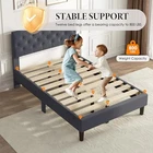 This twin bed frame is a game-changer! The linen upholstered headboard looks elegant and adds a cozy vibe to my room. The sturdy wood slats provide great support—no more squeaky noises or sagging. Assembly was a breeze, and the grey color fits perfectly with my decor. Love how comfy and stylish it is!