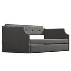 Sofa Bed Frame Twin Size Upholstered Tufted Daybed with Trundle for Living Room Both couch and extra spot to snooze, daybeds like this one are a versatile accent perfect for guest rooms and living spaces. This daybed is crafted with a pine and engineered wood frame, and is upholstered in 100% polyester. It features notched arms, arched back, and nailhead trim, this piece adds a classic look with a little French country inspiration to any room. This daybed measures 29.5'' H x 76'' L x 39.4'' W, and accommodates a twin-sized mattress. Plus, the built-in trundle bed lets more than one guest get a good night's rest. Description Material Linen and MDF Size Twin Color Gray numbers of package 2 Spring box No need Assembly Required Yes Origin Vietnam Numbers of slats(daybed) 10 Numbers of slats(trundle) 10 Dimensions Overall Product Dimension 80''L*81.2''W*29.5''H Package Dimension Please refer to the Specification Daybed bed 76''x 39.4'' Trundle 75.2''x 39.2'' Total height 29.5'' Overall Product Weight 130lb Daybed Weight capability 220lb Trundle Weight capability 200lb Recommend Trundle Mattress thickness 6'' Recommend Daybed Mattress thickness 8-10''