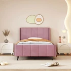 This twin-size velvet bed frame is a dream! The plush pink upholstery and wingback headboard add a luxurious touch, while the sturdy wooden slats provide great support—no box spring needed. Assembly was straightforward, and the channel-tufted design gives it a chic, high-end look. Super comfortable and stylish, perfect for upgrading any bedroom!