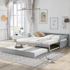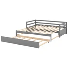 You may like Metal Floor Bunk Bed, Twin XL over Queen, Black New $294.74 Free shipping & Free return Twin Size Rabbit-Shape Upholstered Princess Bed with Headboard & Footboard New $246.91 Free shipping & Free return Metal Floor Bunk Bed, Twin over Full,White(OLD SKU:MF193244AAK) New $278.27 Free shipping & Free return Twin Storage House Bed for kids with Bedside Table, Trundle, White New $260.28 Free shipping & Free return King Size Canopy Platform Bed with Headboard and Support Legs, Grey Wash New $354.36 Free shipping & Free return Ceres Metal Bed, Black with Walnut Wood Headboard&Footboard, Queen New $172.23 Free shipping & Free return Bed frame with charging station queen size,87.80'' L x 61.80'' W x 39.2'' H New $184.45 Free shipping & Free return Full Size Metal & Wood Platform Bed with Headboard & Footboard, White New $185.07 Free shipping & Free return Wood Daybed with Three Drawers ,Twin Size Daybed,No Box Spring Needed ,White New $368.15 Free shipping & Free return Twin Bed with Trundle,Bookcase,Grey New $296.31 Free shipping & Free return Platform Bed with Twin Size Trundle, Twin Size Frame, Espresso New $280.15 Free shipping & Free return Twin Size Upholstered Velvet Platform Bed with Shell-Shaped Headboard, Blue New $220.22 Free shipping & Free return Full Size Upholstered Bed Frame with LED, Velvet Platform, Tufted Headboard New $251.70 Free shipping & Free return Twin Size Upholstered Boucle Fabric Platform Bed with Cloud-Shaped Headboard New $219.81 Free shipping & Free return Twin Size Upholstered Velvet Platform Bed with Shell-Shaped Headboard, Pink New $220.22 Free shipping & Free return Full size Daybed, Wood Slat Support, with Bedside Shelf and Two Drawers, White New $467.43 Free shipping & Free return Twin Wood Platform Bed with All-in-One Cabinet & 8 Drawers, Gray New $963.61 Free shipping & Free return Twin Metal Platform Bed Frame w/ Wooden Headboard, Footboard & USB LINER New $143.24 Free shipping & Free return Twin Upholstered Bed with Strawberry Headboard & Footboard, Pink New $176.10 Free shipping & Free return Modern White Solid Wood King Platform Bed (old sku:WF283526AAK) New $367.15 Free shipping & Free return Metal Floor Bunk Bed, Twin XL over Queen, Black New $294.74 Free shipping & Free return Twin Size Rabbit-Shape Upholstered Princess Bed with Headboard & Footboard New $246.91 Free shipping & Free return Metal Floor Bunk Bed, Twin over Full,White(OLD SKU:MF193244AAK) New $278.27 Free shipping & Free return Twin Storage House Bed for kids with Bedside Table, Trundle, White New $260.28 Free shipping & Free return King Size Canopy Platform Bed with Headboard and Support Legs, Grey Wash New $354.36 Free shipping & Free return Specification Product Information Bed Size: Twin Bed Type: Daybeds Main Color: Gray Main Material: Pine Bed Frame Material: Wood Box Spring Requirements: Box Spring Not Required Product Dimensions Item Length (in.): 79.50 Item Width (in.): 118.10 Item Height (in.): 25.90 Weight (lbs.): 96.00 Package Size Length (in.): 80.31 Width (in.): 15.94 Height (in.): 6.10 Weight (lbs.): 100.31 Product Features [Simple Design] Twin or double twin daybed with trundle matches with any kind of decor and ideal for your bedroom or any small living spaces. [Twin or Double Twin] The twin size daybed can be pulled out as a double twin platform bed,and with the trundle,you can accommodate your friends or over-night guests. [Superior Quality] Our bed is is made of high-quality pine wood and MDF, with a modern look and solid structure, the design ensures strong stability and durability. [With Trundle] Fun and functional, our bed is the perfect addition to rooms of all design styles and it includes a trundle which can effectively utilize the room space. [Easy Assembly] Each order comes with a clear and detailed assembly instruction guide and all necessary tools are provided to get your bed assembled in no time. Description Twin or Double Twin Daybed with Trundle,Gray Give your the freedom to host friends in your own space with this versatile twin-sized daybed,featuring a rolling trundle bed underneath to accommodate overnight guests,and the twin daybed can be pulled out for a double twin size bed.Crafted from pine wood and MDF, this clean-lined design features an open frame in a clean finish with headboard and footboard. Thanks to this piece's neutral tones, it's sure to blend easily with any color palette your picks. Description Bed Frame Material Pine Wood+MDF Size Twin over Double Twin Color Gray Numbers of Package 1 Assembly Required Yes Dimensions Overall Product Dimension 79.5''L*118.1''W*25.9''H Daybed Dimension 76''x39.2'' (pull in) Daybed Dimension 76''x76.8'' (pull out) Trundle Dimension 74''x39.3'' Total Height 25.9'' Bed Weight Capacity 250lb Trundle Weight Capacity 250lb Overall Product Weight 96lb Slats of Daybed 9+10pcs Slats of Trundle 7pcs Recommend Daybed/Trundle Mattress Thickness 8-10''/6''