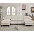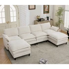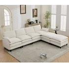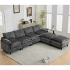 [Comfort Chenille Fabric]: This modern sofa is made of premium skin-friendly fabric, breathable, soft and wearable. With tightly sewn alignment and high elastic sponge filler upholstery to provide enough sitting support, our cloud sofa set can make you relax physically and mentally and snooze anytime! [Reversible Modular Sofa]: You can freely combine and move each unit sofa and footstool to rearrange into a left or right or U-shaped sofa, which can easily adapt to your changing needs. Suitable for large and small rooms. [Strong Structural Frame]: The deep sectional sofa frame is made of wood to ensure robustness and can weigh up to 300 pounds per seat. It is not easy to be deformed and loose, and can extend the service life of the sofa cover. [Versatility And Flexibility]: The modular sofa is completely modular and can be combined into a U-shaped sofa, an L-shaped sofa, a 4-seat 2-foot stool sofa, which can be installed anywhere, and can be configured for movie nights, home visits, and sleeping. [Two Bags With 6-Piece Sets]: Each module can hold up to 300 LBS; Modular sofa, 6 modules are divided into two boxes, greatly reducing your final freight. Flexible Combinations The sofa can change shape according to the number of users in your use scenario. Features Design Modular Sofa, Movable Footstool Sofa Seating Capacity 6 Upholstery Material Chenille Seat Fill Material Foam; Pocket Spring Back Cushion Included Yes,4 included Product Care Lightly brush or vacuum frequently to remove dust and grime. Spot clean using a mild water-based solvent. Pre-test cleaning methods on a hidden surface. A professional cleaning service is recommended for an overall soiled condition. Country of Origin China Product Dimensions Dimension 121.5 "W x 62.5 "D x 35 "H Backrest Height - Floor to Top of Back 28'' Arm Height - Floor to Arm 28'' Seat Height- Floor to Seat 22.5" Seated depth 52.5"/22.3" Throw pillow size 29*18.5"(L*D) Armrest pillow size 24*12"(L*D) Weight Capacity 300 lbs / seat Plastic feet size 4.72" Adult Assembly Required Yes Suggested # of People 6 Notice: 1.Due to the difference between computer display and photography, the color of the pictures and actual products will be slightly different. 2.The packaging of the product package may be updated at any time, please refer to the actual product received. 3. Most of our sofas are hand-measured, therefore the dimensions are for reference only, and may marginally deviate. 4.Due to the vacuum compression of some seats, you need to pat and wait for time to help them return to their original state. On Mar 10, 2025 at 01:21:54 PDT, seller added the following information: