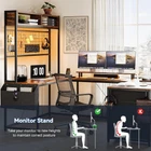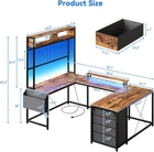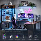 【Stylish & Functional Grid Design】The U shaped office desk combines style and functionality with a unique grid design. the under-grid bookshelf maximizes space utilization, providing storage for books, devices, and more. enhance organization and room aesthetics with this modern furniture addition. 【Multi-functional U Shape Gaming Desk】This versatile computer desk features an ergonomic display stand and a side display storage rack, as well as 4 handy fabric drawers to meet your many needs. The top hutch design provides ample space for files, books, and supplies, creating a functional workspace for gaming and work tasks. three wide desktops offer plenty of surface area for various activities. 【Dynamic RGB LED Lighting】 Enjoy the smart app and ir remote control over the RGB LED strip lights, offering 60,000 colors and dynamic modes for customized aesthetics. the music sync feature changes colors with the music rhythm, creating an immersive gaming or working environment. set automatic on/off schedules for added convenience. 【Enhanced Ergonomics & Power Support】 A flexible monitor stand promotes ergonomic sight levels, reducing neck strain. the U shaped desk features 4 power outlets and 2 USB ports for convenient device charging, offering extra power support for computer peripherals, gaming gear, and more during work or play sessions. 【Robust Construction】This U-shaped desk features sturdy construction with thick engineered wood and solid metal legs, offering an excellent load-bearing capacity of up to 600 lbs. Durable and stable, this desk ensures long-term reliability for gaming setups and workstations. Product Description Storage Bag Storage Shelf Built in Power Strip 4-Drawer Design