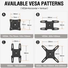 TV Wall Mount Applicability - This TV mount fits most 14-42 inch LED/LCD TVs and monitors, with 33 lbs. MAX loading and VESA sizes from 75x75mm to 200x200mm. This wall mount TV bracket is designed for single wood stud or concrete/brick walls. 180° Rotation & Swivel Design - With the 180° rotation unique design, the full motion TV mount can easily display in landscape or portrait position to meet your special need. Also, this swivel TV mount can swivel TV 180° to cover any angles in your home for the ultimate viewing experience. Adjustable for Max Flexibility - This TV wall mount bracket can tilt TV +3°/-10° to reduce glare. The strong articulating arm provides a smooth 14.96" extension and 2.67" depth to the wall for saving space. Universal Monitor Wall Mount - Our monitor mount fits monitors sizes 14-42 inch with VESA patterns from 75x75mm to 200x200mm. This wall monitor mount can keep your monitor to eye level and mount your monitor at an ergonomic sitting position to reduce eyes train and neck pain while saving up much space on your desktop. Easy Installation - The TV wall mount package comes with a completed hardware mounting kit, and the step-by-step instructions will guide you through the simple assembly and installation process. NOTE: DO NOT install into drywall alone. Concrete wall anchors will be sent per request.