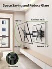 Universal TV Mounts This full motion TV mount fits for most of 26-55inch TVs with VESA size 75*75mm, 100*100mm, 200*100mm, 200*200mm, 300*300mm, 400*200mm, 400*400mm available. This TV mount includes all features you need. Extend out 18.95" and swivel +/-90° to give any seat in the house the perfect viewing angle. Even above the fireplace, you can tilt it up 5° or down 15° to find the perfect position you want. Also, this mount sits only 2.81" from the wall when retracted in, ideal for those large TV. More Wall Mounting Options Concrete wall, single wood stud spacing with piece of wall plate, you have no worries with this mounting system. Easy Installation Install it in 3 Easy Steps: Install this TV mounting bracket on the wall - Mount the brackets on TV - Hang the TV and Screw tight! The job is done! Customer First, Quality First Customer first and quality first are our business principle. Our US-Based customer support are always ready to help. If you have any concerns before you purchase or any installation problems, you can feel free to us. 10 years Guaranteed! Your Safety is Our Priority We have over 20 years TV mounts manufacturing experience. All of our TV brackets are designed, produced and tested with the highest international standards. Trusted by thousands of families and companies who have installed our safe mounts into their spaces. Notice Use 4 side screws if you mount on concrete wall, just use 3 middle screws if you mount on wood stud! TV WALL MOUNT COMPATIBLITY: This full motion TV mount fits for most of 26-55inch TVs with VESA size 75*75mm to 400*400mm available and perfect center design. ADJUSTABLE VIEW COMFORTABLE: This swivel TV mounting bracket with articulating arms includes +5° /-15° tilt, ±90°swivel( maximum TV swivel angle depends on your TV), +/-5° post-installation adjustment allows the perfect TV leveling.The TV wall mount of will make your TV flexibility and better view based on your seat in the room. The TV wall holder also let your TV mounted in the corner. EASY TO INSTALL: Detailed instruction and all included hardware in pre-labeled bags. This TV mount is designed for use in wood stud, solid concrete walls - DO NOT install into drywall alone Warm tips: In order to avoid customer misusing concrete anchors onto wood studs or drywall directly causing any safety issues, we removed concrete anchors from our package. If you need concrete anchors, please us to get it for free which be sent from USA. SAVING SPACE & HEAVY DUTY: This TV wall mount tilt can pull out to 16.7” and retract back to 2.81”, which save some valuable space for you and make your house look neat. The wall mount TV bracket unit is made of heavy duty steel by lots of advanced automatic machines. PRODUCT INCLUDES: Come with bubble level, 3 pieces pack of cable ties and all standard mounting hardware(TV Screws: *12mm 4pcs, *30mm 4pcs, M6*12mm 4pcs, M6*35mm 4pcs, M8*25mm, M8*45mm. Spacers: M6*17mm 4pcs, M8*22mm 4pcs, 10mm 4pcs, 2.5mm 8pcs. Washers: 4pcs, M6 4pcs.), 10-year friendly US-based .