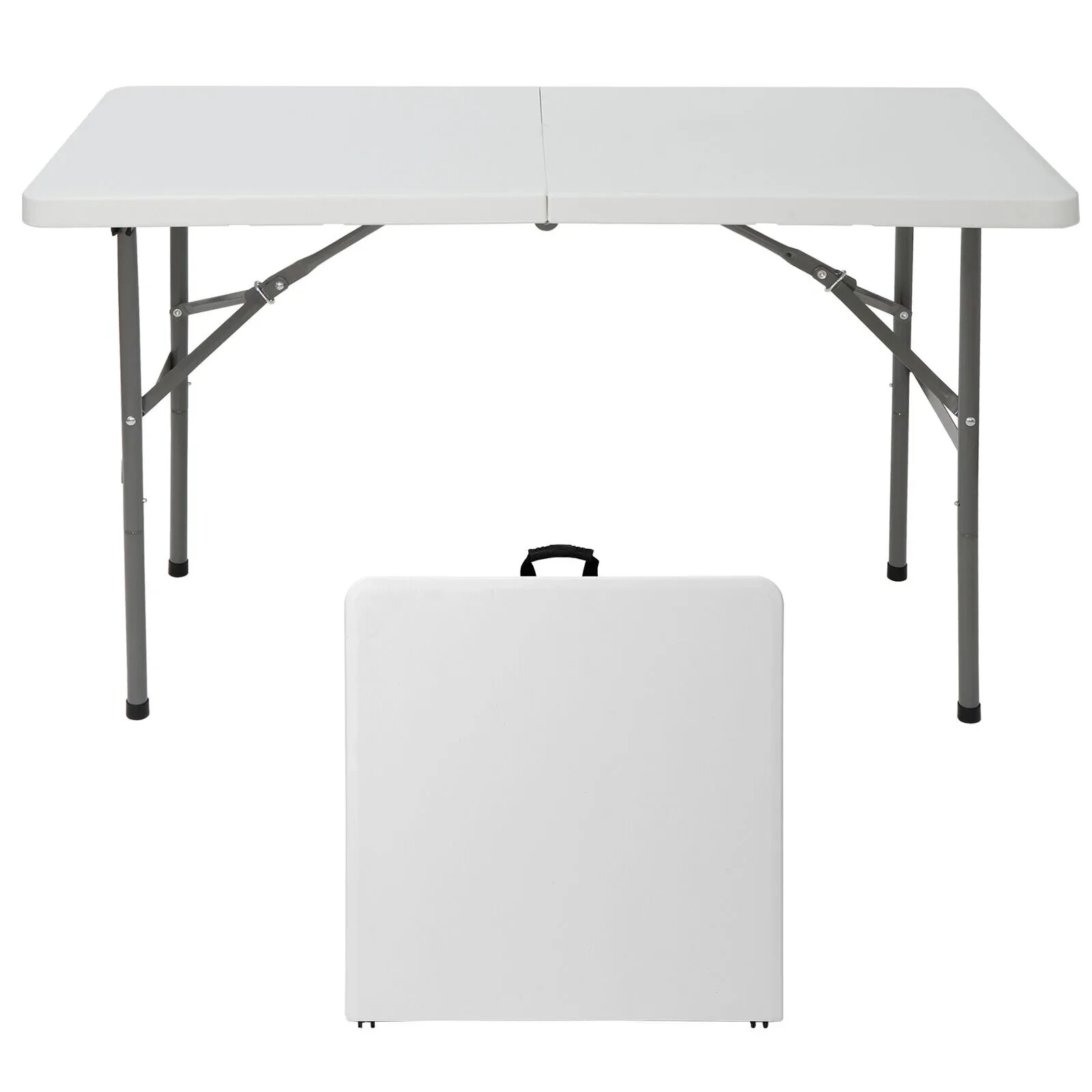 3 ft folding table Specifications: Color:White Item Weight:19.73lbs Product Size:33.66"*33.66"*28.94" Product material: Panel Material is HDPE The Metal Part Is Q195 Stainless Steel Sprayed Features: Heavy-duty blow-mold light grey resin top for durability and easy cleanup Resin surface is waterproof, scratch, and impact resistant, making this multipurpose utility table ideal for indoor or outdoor use Light grey powder-coated steel tube framing provides strong long-lasting use and lightweight portability Versatile surface option for parties, family reunions, trade shows, business meetings, reception areas, training rooms and banquet venues 4 ft folding table Features: High-quality Materials: 1.57" thick, the top of table is made of blow-molded high-density polyethylene,the surface is waterproof,Scratch & Stain Resistant,the steel legs are powder-coated for durability. Non-marring Rubber Feet: Includes non-marring foot caps to protect any floor surface from scratches or damage. Lightweight and Portable: Easy to carry indoors or outdoors,and can be folded,you can stored it in a closet or garage when not in use.with a carrying handle on the side for easy transportation. Easy to Clean and No Assemble: Just wipe it with a rag,you don't need assemble it, it can be used by just unfolding the legs. Wide Usage: It can be used daily family dining, outdoor exhibitions, assembly training, company meetings, children's learning ect. Specifications: Color:White Frame Material: Plastic Item Weight:19.4 LB Overall Size:48.4*24.2*28.9 in Folded Size:24.2*24*3 in Desktop thickness: 1.5 in Weight Capacity:300LB 6 ft folding table Specifications: Color:White Material: HDPE Item Weight:25.6lbs Load Capacity:220 lbs Product Size:70.9"*27.4"*28.6" Features: With folding legs that seats up to four adults. Perfect for both small and large spaces, use for everything from holding your everyday items to hosting your next seminar. DHPE white table top - waterproof, impact and stain resistant top - gray powder coated locking legs - protective floor caps Versatile surface option for parties, trade shows, solariums, reception areas, training rooms Ideal for family reunions, picnics, camping trips, buffets or barbecues. 8 ft folding table Features: Sturdy and Durable: With a durable yet lightweight powder coated steel base,also equipped with gravity locks and bolts for added stability and securing when not in use. Foldable Design: The collapsible legs secure into, allowing the table to fold in half for compact storage. The built-in carry handle provides effortless transport and portability. Multipurpose & Versatile: Folding tables cater to any event including birthday parties, holiday gatherings or outdoor barbecues in the summer,they can be dressed up or dressed down depending on your specific needs. Easy to Clean: The slightly textured tabletop is easy to clean as well as stain and scratch resistant, yet smooth enough to write on. Specifications: Color:White Material: HDPE+Q195 Steel Product Dimensions: 8ft(L) x 2.5ft(W) x 2.4ft(H) (unfolded) 47.3in(L) x 30in(W) x 3.5in(H)(folded) Desktop thickness: 1.73" Static Load Capacity:298 lbs Item Weight: 40.7lbs 4 ft round folding table Features: High Quality Material: This table is constructed of premium HDPE top and solid steel legs,it is impact and stain-resistant as well as waterproof and the table legs with rubber caps not only protect the floor but also prevent slipping. Foldable and Storage: The collapsible table legs can be stored in the slots of the foldable tabletop and fixed by the buckles. Only half of the tabletop area after folding saves your storage space. Lightweight and Portable: It folds in half with a carry handle, so you can easily take it out when you're camping or enjoying a day in the countryside. Stable and Strong: The lock is designed to further increase the stability and safety of the folding table. The thickened powder-coated steel pipe provides a strong weight capacity,it can hold up to 440lbs Wide Application: It can be used as a picnic table, dining table, barbecue side table, commercial table, or patio table or bring it with you on a camping trip, host a picnic party in your backyard, etc. Specifications: Color: White Material: HDPE, PP,Steel Item Weight:32lbs Overall Size: 48.2"x48.2"x29"(L x W x H) Folding Size: 48.2" x24.2" x 3.7"(L x W x H) Weight Capacity: 440LBs