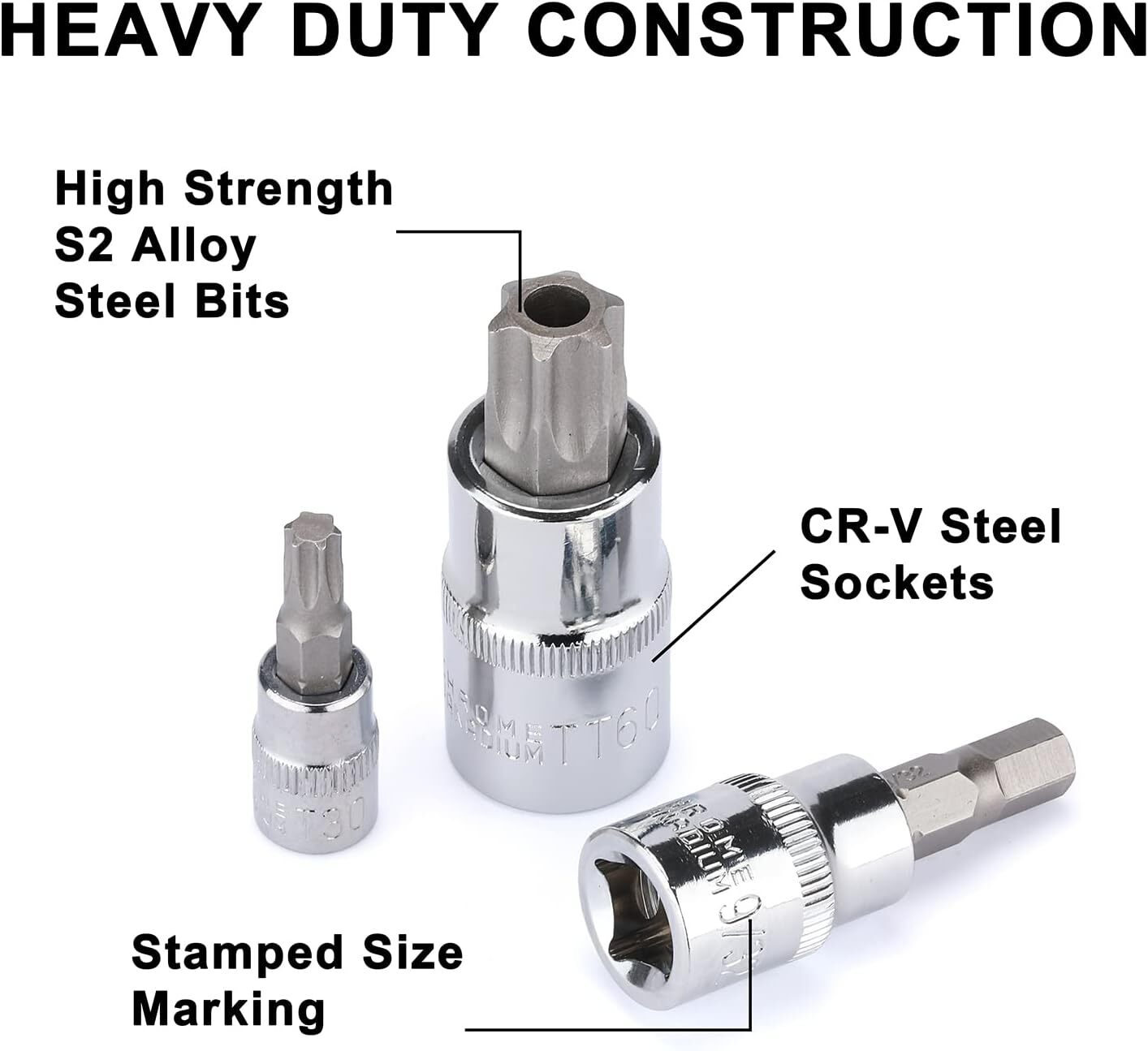 Includes: (14)E-Torx Sockets, (35)hex bits socket, (17)tamper proof torx sockets, (14)torx bits sockets, (11)torx long bit sockets, (16)long ball end hex sockets. Combination of S2 allot steel bits and chrome vanadium steel ensures high hardness,wear resistance and durability. Chamfered edge of each bit ensuring a smooth fit onto fasteners. DIfferent bits,mutiple secifications meet your different needs. All Mayouko Tools meet or exceed ANSI & DIN performance standards. It comes with 1 year quality guarantee. Mayouko is a professional manufacturer which focus on auto repair tools&accessories, toolboxes, tool organizers,etc. Hope-meetuag You can find all you need here Mayouko 107 Pieces Bit Socket Set, 1/4", 3/8" and 1/2" Drive, Torx/Extra Long Torx/Tamper Proof Torx/Hex/Ball End Hex, SAE/Metric, S2 Steel Bits Includes: (14)E-Torx Sockets, (35)hex bits socket, (17)tamper proof torx sockets, (14)torx bits sockets, (11)torx long bit sockets, (16)long ball end hex sockets. Combination of S2 allot steel bits and chrome vanadium steel ensures high hardness,wear resistance and durability. Chamfered edge of each bit ensuring a smooth fit onto fasteners. DIfferent bits,mutiple secifications meet your different needs. All Mayouko Tools meet or exceed ANSI & DIN performance standards. It comes with 1 year quality guarantee. Mayouko is a professional manufacturer which focus on auto repair tools&accessories, toolboxes, tool organizers,etc. 14 PCS E-Torx sockets: E4-E24 35 PCS hex bits sockets: HW2-HW19; 5/64"-3/4" 17 PCS tamper proof torx sockets: TT6-TT70 14 PCS torx bits sockets: T8-T70 11 PCS torx long bit sockets: T8-T60 16 PCS long ball end hex sockets: HW3-HW10; 1/8"-3/8" This Mayouko 107PCS Master Hex Bits Sockets Set has multiple specification to meet your different needs. Professional quality is suitable for engineers, mechanics and other professionalists use. DIfferent bits,mutiple secifications meet your different needs. Heavy dute CR-V steel with black phosphate finish for durable use. Combination of S2 allot steel bits and chrome vanadium steel ensures high hardness,wear resistance and durability. TOOLBOX ORGANIZER IMPACT SOCKET SET BIT SOCKET SOCKET ACCESSORY SET SOCKET ORGANIZER TOOL ORGANIZERS PLIERS SET Set Includes Mayouko 107-Piece Master Bit Sockets Set,1/4",3/8"and 1/2" Drive Torx/Extra Long Torx/Tamper Proof Torx/Hex/Ball End Hex,SAE/Metric Bit Set Item Specifics Brand Unbranded Type Screwdriver Bit Sets Volume 15.35 x 11.61 x 3.15 inches Weight 14.37 pounds Payment If you do not have a PayPal account, to get started and buy your first item with us is very easy. Simply click on the 'Buy It Now' button and follow the eBay checkout steps. Select PayPal as the payment method you then will be given the chance to enter your card details in to PayPal's secure checkout in order to pay for your order. Shipping 1. Your purchase is shipped directly to you as soon as we have received your cleared payment. 2. Normally all of parcels would be shipped within 3days(From Monday to Saturday). 3. We will send information on eBay or email if the parcel was delayed due to our holiday. 4. We provide three kinds of shipping for choice. Shipping way depend on delivery address. Returns If an unit is received defective, of course we take it back or replace it. If the unit is received as expected, we must charge for our expenses if you want to send it back. We have to charge for the work of handling, retesting and restocking. Contact Us Dear buyer, Thank you for visiting my store! Our warehouses are located in many regions around the United States. According to the customer's delivery address. Use USPS/UPS/DHL logistics transportation service. Prioritize the best quality logistics solutions to transport packages. Ensure package delivery time, At the same time. Have any after-sales problems, Feel free to contact us. At your service Hope-meetuag You can find all you need here DESCRIPTION PAYMENT SHIPPING RETURN POLICY CONTACT US Shop Category Store Home Other Hot Item US Ignition Coil 2001-2010 Toyota Yaris Prius xA xB Echo 1.5L 90919-02240 USD 21.94 US Rear Pair (2) Shock Absorber 06-2010 Hyundai Sonata 2006-2011 Azera USD 49.37 US Rear Left Right ABS Wheel Speed Sensor,for Toyota RAV-4 2000-2005 89545-42030 USD 23.35 US Vapor Canister Purge Valve Solenoid compatible Volkswagen VW EOS Golf Jetta P USD 17.01 US 2X Rear Struts Assembly / Shocks 2003 2004 2005 2006 2007 2008 Honda Pilot USD 47.28 Picture New List Item US SmittyBilt AIR COMPRESSOR 5.65CFM SB2781 USD 203.99 US Milwaukee 2446-21XC M12 Cordless Lithium-Ion Grease Gun USD 208.98 US Inficon Inficon Refrigerant Leak Detector Model:705-202-G1 USD 217.12 US Camco TRAC Outdoors Pontoon 35-G3 Electric Anchor Winch | Features a High-Eff USD 199.99 US 3M Random Orbital Sander – Pneumatic Palm Sander – 5” x 3/16” Diam. Orbit – S USD 232.60 Help & Info Payment Policy Shipping Policy Return Policy FAQ About Us Mayouko 107 Pieces Bit Socket Set, 1/4", 3/8" and 1/2" Drive, Torx/Extra Long Torx/Tamper Proof Torx/Hex/Ball End Hex, SAE/Metric, S2 Steel Bits Includes: (14)E-Torx Sockets, (35)hex bits socket, (17)tamper proof torx sockets, (14)torx bits sockets, (11)torx long bit sockets, (16)long ball end hex sockets. Combination of S2 allot steel bits and chrome vanadium steel ensures high hardness,wear resistance and durability. Chamfered edge of each bit ensuring a smooth fit onto fasteners. DIfferent bits,mutiple secifications meet your different needs. All Mayouko Tools meet or exceed ANSI & DIN performance standards. It comes with 1 year quality guarantee. Mayouko is a professional manufacturer which focus on auto repair tools&accessories, toolboxes, tool organizers,etc. 14 PCS E-Torx sockets: E4-E24 35 PCS hex bits sockets: HW2-HW19; 5/64"-3/4" 17 PCS tamper proof torx sockets: TT6-TT70 14 PCS torx bits sockets: T8-T70 11 PCS torx long bit sockets: T8-T60 16 PCS long ball end hex sockets: HW3-HW10; 1/8"-3/8" This Mayouko 107PCS Master Hex Bits So