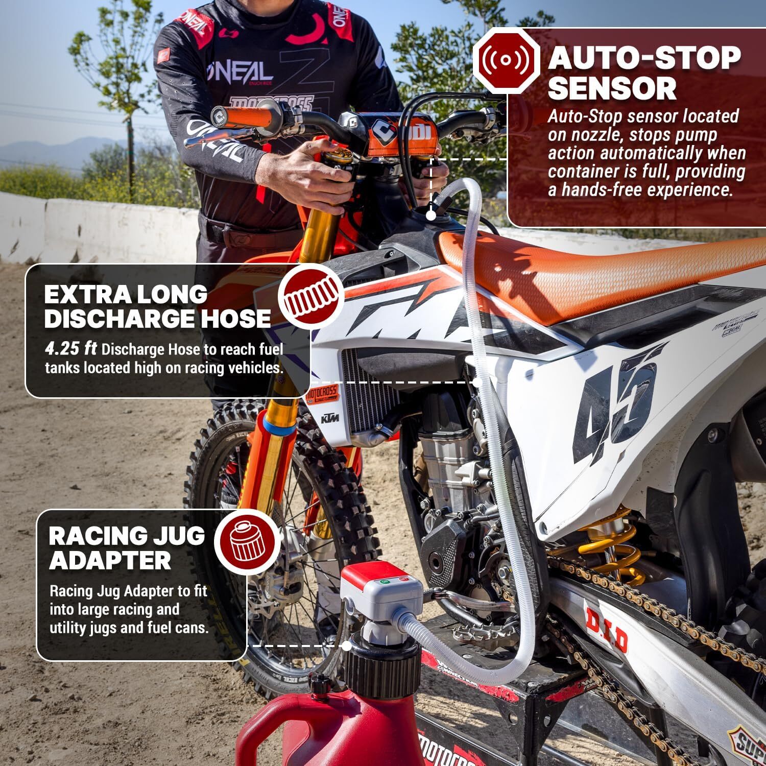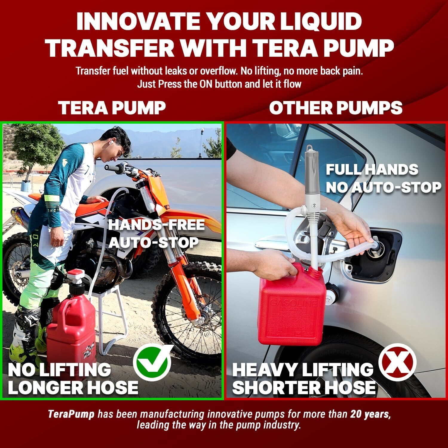[ CAP REPLACEMENT ] The TFRA-XL-01 4th Generation Fuel Transfer Pump is made to replace the fuel spout for numerous fuel cans and containers. Compatible with Midwest Can No-Spill Can and other containers with our included thread adapters. [ AUTO-STOP OVERFILL SYSTEM ] Using a sensor inside the discharge nozzle the TFRA-XL-01 will automatically stop the pump when your car or container is full. Experience easy refueling without spilling a single drop of fuel. Hope-meetuag You can find all you need here TERA PUMP [ AUTO-STOP ] Gas Cap Fuel Transfer Pump XL Intake Hose (Gasoline Diesel Kerosene) Universal Spout Replacement for Gas Cans and Containers [ CAP REPLACEMENT ] The TFRA-XL-01 4th Generation Fuel Transfer Pump is made to replace the fuel spout for numerous fuel cans and containers. Compatible with Midwest Can No-Spill Can and other containers with our included thread adapters. [ AUTO-STOP OVERFILL SYSTEM ] Using a sensor inside the discharge nozzle the TFRA-XL-01 will automatically stop the pump when your car or container is full. Experience easy refueling without spilling a single drop of fuel. [ FAST REFUELING RATE ] At 2.4 Gallons per Minute (11 Liters a Minute) empty a 5 gallon can of fuel in ~2 minutes. Refuel your car truck motorcycle boat farm or lawn care equipment - For use with Racing Fuels Gasoline E15 E85 (Remove pump after use E85 may corrode seals) Diesel Water(not for drinking) Kerosene & Light Oils [ NO FRILLS BATTERY POWER ] No messy charging cables or rechargeable batteries losing capacity over time. Use 4 AA size alkaline batteries to pump up to 50x 5 gallon containers (250 Gallons) or 25x 5 gallon containers (125 Gallons) using 2 batteries in emergency mode. [ CSA CERTIFIED PRODUCT ] Under UL Standards. This product was tested by CSA per an agreement with UL and is certified for use in both Canada and the US according to applicable Canadian and US standards. XL Battery Powered Fuel Transfer Pump requires 4 "AA" batteries (not included) and features a 23-inch suction tube and a 51-inch discharge hose. It delivers a volume of 2.3 gallons per minute and includes a built-in auto-stop system. Designed for various applications it is suitable for use with gasoline diesel kerosene e15 e85 light oils and non-potable water. QUICK FUEL TRANSFER Ultra Fast Fluid Transfer without the need to lift your gas jug Pump up to 2.3 Gallons per Minute BATTERY POWERED Recommended to use all Four (4) AA batteries when you are able to but it is possible to operate with Two (2) AA batteries during emergencies AUTO STOP A built-in sensor is located at the nozzle it will sense fluid is close to overfilling and stop the flow Liquid inside the pump head and intake hose will be pushed back down to container XL INTAKE HOSE 23 inch Intake Hose The extended length suction tube allows the pump to reach even the deepest of containers Sized to fit 5 gallon racing jugs ADAPTABLE The 4 included adapters allow the pump to attach to almost all fuel cans Compatible with Utility Jugs Racing Jugs VP Racing Mr Gasket Midwest Can No-Spill Can Briggs & Stratton & Garage BOSS × Does Not Include Gas Can & Does Not fit FMD Gas Cans XL OUTTAKE HOSE 51 inch Discharge Hose allows you to reach the highest or farthest fuel doors all while leaving the container on the ground. Great for refueling Boats right from the dock XL Battery Powered Fuel Transfer Pump Item Specifics Brand Unbranded Type Gas Cans Volume 13.86 x 6.06 x 3.54 inches Weight 0.73 Kilograms Payment If you do not have a PayPal account, to get started and buy your first item with us is very easy. Simply click on the 'Buy It Now' button and follow the eBay checkout steps. Select PayPal as the payment method you then will be given the chance to enter your card details in to PayPal's secure checkout in order to pay for your order. Shipping 1. Your purchase is shipped directly to you as soon as we have received your cleared payment. 2. Normally all of parcels would be shipped within 3days(From Monday to Saturday). 3. We will send information on eBay or email if the parcel was delayed due to our holiday. 4. We provide three kinds of shipping for choice. Shipping way depend on delivery address. Returns If an unit is received defective, of course we take it back or replace it. If the unit is received as expected, we must charge for our expenses if you want to send it back. We have to charge for the work of handling, retesting and restocking. Contact Us Dear buyer, Thank you for visiting my store! Our warehouses are located in many regions around the United States. According to the customer's delivery address. Use USPS/UPS/DHL logistics transportation service. Prioritize the best quality logistics solutions to transport packages. Ensure package delivery time, At the same time. Have any after-sales problems, Feel free to contact us. At your service Hope-meetuag You can find all you need here DESCRIPTION PAYMENT SHIPPING RETURN POLICY CONTACT US Shop Category Store Home Other Hot Item US Rear Left Right ABS Wheel Speed Sensor,for Toyota RAV-4 2000-2005 89545-42030 USD 23.35 US Ignition Coil 2001-2010 Toyota Yaris Prius xA xB Echo 1.5L 90919-02240 USD 21.94 US Vapor Canister Purge Valve Solenoid compatible Volkswagen VW EOS Golf Jetta P USD 17.01 US 2X Rear Struts Assembly / Shocks 2003 2004 2005 2006 2007 2008 Honda Pilot USD 47.28 US Rear Pair (2) Shock Absorber 06-2010 Hyundai Sonata 2006-2011 Azera USD 49.37 Picture New List Item US Inficon Inficon Refrigerant Leak Detector Model:705-202-G1 USD 217.12 US Milwaukee 2446-21XC M12 Cordless Lithium-Ion Grease Gun USD 208.98 US 3M Random Orbital Sander – Pneumatic Palm Sander – 5” x 3/16” Diam. Orbit – S USD 232.60 US Camco TRAC Outdoors Pontoon 35-G3 Electric Anchor Winch | Features a High-Eff USD 199.99 US SmittyBilt AIR COMPRESSOR 5.65CFM SB2781 USD 203.99 Help & Info Payment Policy Shipping Policy Return Policy FAQ About Us TERA PUMP [ AUTO-STOP ] Gas Cap Fuel Transfer Pump XL Intake Hose (Gasoline Di