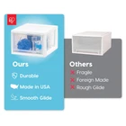 The USA plastic stacking drawers offer a practical storage solution for any room of your home, allowing you to organize and store a variety of frequently used household items in the bedroom, kitchen, pantry, bathroom, craft room, nursery, or dorm room. Keep small and easy-to-lose items together or turn the drawers into a one-stop hub for daily essentials such as vitamins, snacks, medicine, diapers, wipes, and more. The easy-glide drawer grants you easy access to your stored items and the solid walls of the frame help to conceal things from prying eyes. The sturdy material of the drawer keeps your things safe and secure inside and the design works to add storage space in a neutral way to whichever room you place it in. Let's make life a little more organized. MADE IN USA with global materials - The USA plastic stacking drawers offer a practical storage solution for any room in your home. Keep small, similar things together or use them for storing frequently used and replenished items such as snacks, vitamins and medicine, stationery, craft supplies, and more. PERFECT ORGANIZER - Use the sliding drawer to get your closet, bathroom, craft room, or anywhere that needs organizing in order. The drawer allows for easy access to stored items in the kitchen, helps create a storage solution for your craft room, or use it in a nursery to store diapers, onesies, bottles, and whatever else you need. MULTI-FUNCTIONAL - Keep your frequently used items within reach by storing them in the USA plastic stacking drawer. The clear material of the drawer make it easy to check what's inside, while the coral frame provides some privacy and makes it easier to store items in a way that's not distracting. STACKABLE - The stackable design allows you to create your own unique storage solution, either by stacking multiple to create your own tabletop storage cabinet or by spreading them out amongst any rooms that require more storage space. The choice is yours. GREAT SIZE - Dimensions: 13.13"D x 8.5"W x 5.38"H (Inside: 11.63" D x 6.63" W x 4.4"H)