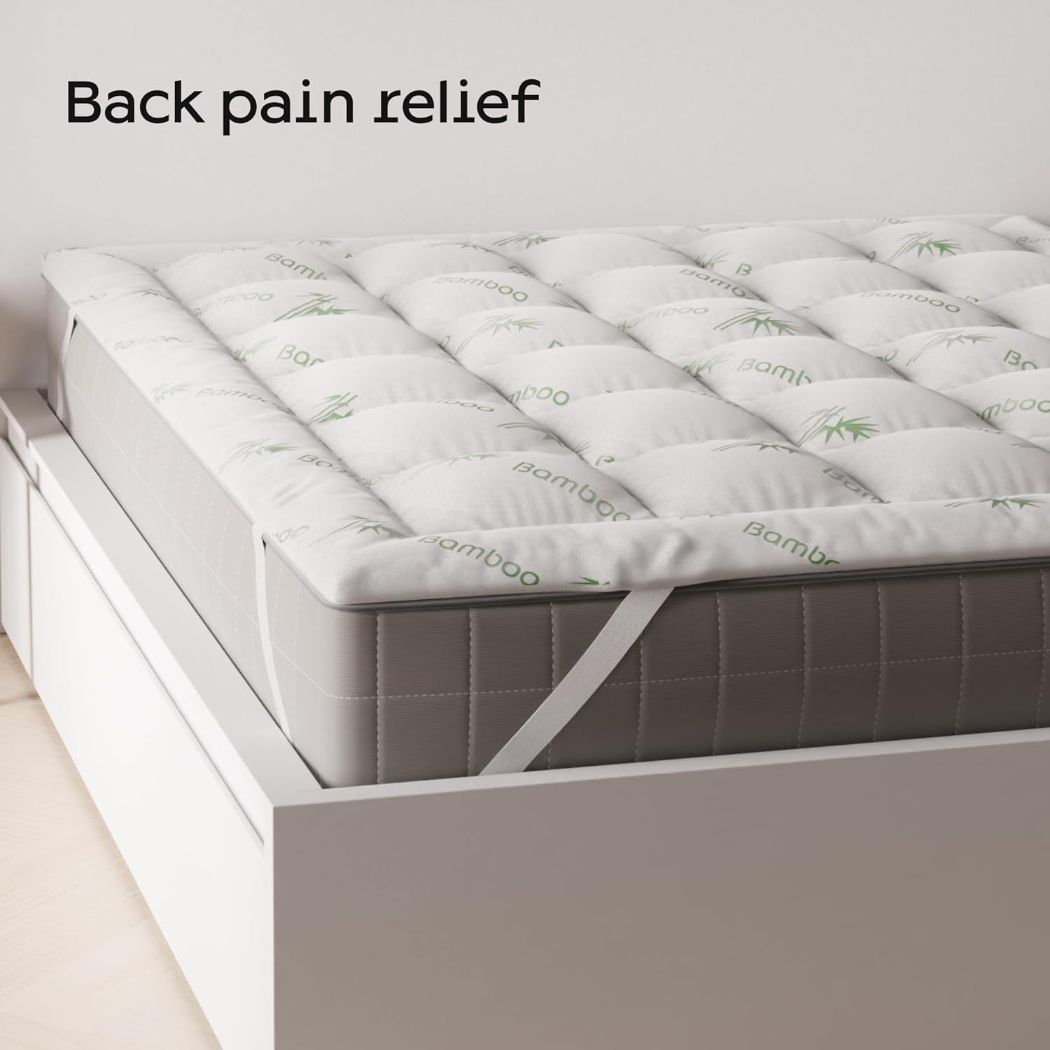 Makes Old Mattress New: Quilted Mattress Topper Queen Bed Size 60x80 Inches Fits 20 Inches Deep Mattresses. Our down alternative quilted mattress topper is filled with viscose made from bamboo, providing a mattress reviver. Don't throw away your old mattress—use our mattress pad to refresh it. Filling: Sleeping on a cloud: Quilted Mattress Cover Queen is Extra soft premium mattress topper provides unbeatable comfort and it is like sleeping on a cloud. Good for people who want extra cushion between them and mattress and looking for extra thick quilted mattress topper protector or pillow top mattress protector cover is protection mattress pad also. Deep 20 Inches Pocket: Quilted Mattress Pad Queen Breathable Premium mattress protector, mattress cover also mattress protector fits up to 20inches as it is extra deep and has a stretchable skirt , which is fully elasticated to grip the mattress and no sliding. Cooling Breathable: Our luxury quilted mattress topper queen is made from virgin fiber filling, which makes sure that luxury mattress pad retains shape and bounces back. Soft touch and feel futon mattress topper. Padded Mattress topper works better than foam bed mattress toppers. Machine Washable: Pillow top mattress topper is easy to wash and mattress pad can be tumble dry on low heat. This is also a cooling mattress topper. Product Description Ultra-Soft Padding This mattress topper is equipped with a soft, cushiony pillow-top texture to transform any mattress into the perfect place to sleep. Viscose Made From Bamboo Material Niagara mattress topper is made of viscose made from bamboo fabric, which is gentle on sensitive skin. Thermo-Regulating The fabric on each topper is temperature-regulating and moisture-wicking, keeping you cool in the summer and warm in the winter. Back Support Sleeping on a mattress topper helps ease back pain by adding an extra layer of protection and support to your old mattress. Extra Deep Pocket The deep pocket design on this topper can fit mattresses that are up to 8-20 inches deep, allowing you to attach this topper to virtually any mattress. Machine-Washable To wash your topper, simply wash it in cold water. Don’t iron or bleach it, just lay it out to dry or tumble dry on low. For maximum fluffiness, fluff up the mattress before its first use.