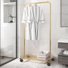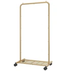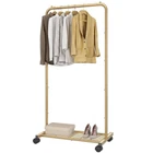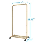 Gold Metal Garment Clothes Rack 28.5 in. W x 59 in. H Assembly Required: Yes Color Family: Gold Color/Finish: Gold Features: With Rod Material: Metal Returnable : 30-Day Product Depth (in.): 14.8 in Product Height (in.): 59 in Product Width (in.): 28.5 in Are you bothered and need a simple clothing storage to tidy up your clothes quickly Perfect for expanding your wardrobe or using as a spare open closet that add extra hanging storage space. It is great for laundry room, bedroom, even for display in a store or market. It is super easy to assemble and move! Heavy duty 360degreewheels in bottom, it can be easily moved and rearranged to meet your needs. And the grid bottom shelf for shoes or boxes to create extra storage.