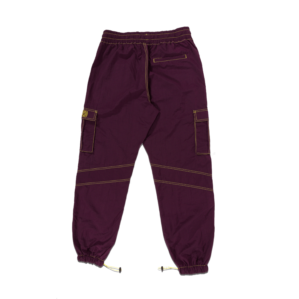 Uncvlizd Cargo Pants- Plum size X-Large Premium Nylon Side pockets Single back pocket Cargo pockets Contrast stitched seams Elastic waistband and cuffs Contrast shock cord drawstrings at waist and cuffs w/ adjustable clasp Embroidered branding on cargo pocket