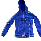 Beautiful purple color athletic jacket Zip front Drawstring hood Front pocket Approx measurements shown in photos No stains/holes