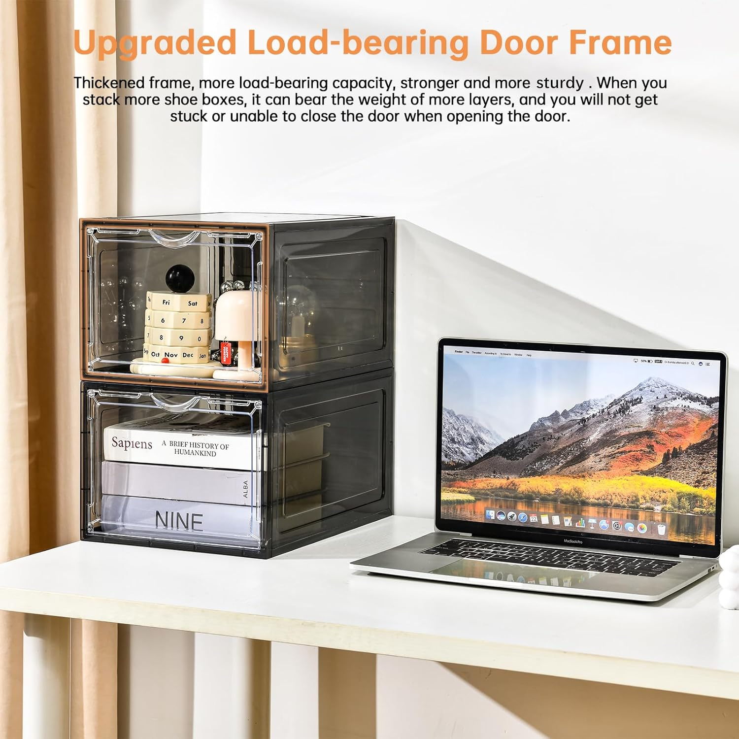 MPM Shoe box 12pcs, Stackable Clear Plastic Shoe Organizer, Shoe Rack, Sneaker