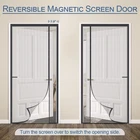Why Upgraded Reinforced Retractable Magnetic Screen Door 1.UPGRADED HEAVY DUTY MESH:Made of reinforced thicker Mesh(255g/m²), which is stronger than ordinary old version screen door mesh(Only 134g/m²).This reinforced thicker Mesh magnetic screen door has a tough texture, high tensile strength, and wear resistance. It is sturdy, tear-proof, and scratch-proof, so there is no need to worry that the door screen will be broken in a short time. thickened reinforced mesh. 2.Left & right side universal opening,this retractable screen doors for front door can be switched freely according to the position of your door handle. 3.36 longer&stronger Magnets run along the entire Closing strip of the magnetic mesh screen for door. 4.Extra 4 HEAVIER heavier bottom gravity stick sewn-in,Refrain the mesh door screen with magnets heavy duty from being blown open by the wind. 5.Full Frame Widen Adhesive Tap Strip-1.5 Inch,make sure maximum stability for longer use. 6.Unique Reinforced Line in Top Middle,Protects the top middle of the patio screen door for tearing. 7.Handy hook&loop straps included-Keep Door open when need. UPGRADED HEAVY DUTY MESH:Made of reinforced thicker Mesh(255g/m²), which is stronger than ordinary old version screen door mesh(Only 134g/m²).This reinforced thicker Mesh magnetic screen door has a tough texture, high tensile strength, and wear resistance. It is sturdy, tear-proof, and scratch-proof, so there is no need to worry that the door screen will be broken in a short time. thickened reinforced mesh LEFT & RIGHT SIDE UNIVERSAL OPENING-Made of soft plush edging, this magnetic door screen can be attached with hook&loop tape on both sides, so that this door net screen with magnet can be switched freely according to the position of your door handle. With side opening screen door magnets,you can see a you can see a nicer unobstructed rectangle of light (vs a line going through the middle of it while you are using middle opening door magnetic screen). EASY TO INSTALL: Screen Door Measures 37"x 81”, Fits Door Sizes: 34"x 80”. It is super simple, quick and fast to install the sliding screen door. Simply attach it to the door frame with the included Velcro-like strips. Extra push pins are included for added security and strength. For best adhesive results, clean and dry surface properly. MORE POWERFUL MAGNETS:There are 36 pcs longer&stronger Magnets run along the entire Closing strip of the magnetic mesh screen door,the stronger and more powerful magnetism provides a "no hands needed" and self sealing way to get in and out of your home. Magnetic screen door mesh curtain never Breaks Gaps. LARGER HEAVIER BOTTOM GRAVITY STICKS:With Powerful magnetic force in the entire closing strips and the extra 4 HEAVIER BOTTOM GRAVITY STICKS sewn-in,Refrain the magnet screen door from being blown open by the wind. DOUBLE REINFORCEMENT:Full Frame Widen Adhesive Tap Strip-1.5 Inch,make sure maximum stability for longer use.Unique Reinforced Line in Top Middle,Protects the top middle of the mesh screen for door for tearing