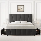 🔥Upholstered Full Size Bed Frame with 4 Storage Drawers Headboard Platform Bed