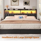 Product Description Homieasy Headboard with Storage Advantages: 1. Indulge in comfort and support with our upholstered headboard. Filled with a high-density sponge and enveloped in smooth PU leather. Upgrade your sleeping experience with our upholstered headboard. 2. Built-in Power Hub Within Arm's Reach - Say goodbye to tangled cords! Our headboard boasts 3 outlets & 2 USB ports for easy charging of your phone, gadgets, and more. No more hunting for chargers. Everything you need is right by your bedside. 3. LED Magic for Your Sleep Haven: - Dive into a world of color with over 60,000 hues and dynamic flashing modes. - Sync the lights to your music's beat or set a timer for the perfect ambiance. - Customize the colors to match your room's vibe using the remote or our handy app. Headboard with Led Light. Level up your romantic evening, cozy get-together, or movie night with the enchanting LED light display. Immerse yourself in a spectrum of 60,000 colors, synchronize with your favorite tunes, and effortlessly revamp your surroundings. Features: Spacious Storage and Stylish Design. - Our headboard rocks a retro wood and iron frame, blending practicality with elegance. - Two-tier shelves keep your essentials organized – phones, glasses, and even a mini projector for movie nights. Elevate your bedroom's style instantly with our chic and functional design. Bed Frame Adapter Included. The adjusting plate can be adjusted freely, and connected flexibly when the installation distance between the headboard bracket and the bed frame is too large or too small. J*****n 5.0 out of 5 stars Measure! Reviewed in the United States in 2024 Verified Purchase The head board is awesome and works great. Study and easy to put together. Make sure you measure your bed frame and where the mounts are for it and measure the floor to the top of your mattress. I did NOT that is completely on me so I have to find a way to modify to raise it up. I am noodling it out. I was able to put it together on my own and I switched up which side the plug was on-easy peasy. I did get help mounting to my bed frame. With it being a king size bed it’s just big to move by myself and mount to the frame. I think with the adapters and buying some additional bolts and some blocks of wood that I will paint black I can get it raised up to where my pillows won’t cover the bottom shelf. I love it and am happy I purchased it. Came with all the necessary tools and pieces. Came quickly and no damage. Directions are easy to follow. I recommend this headboard to anyone looking for a fun and functional headboard. Ps I think the led lights that sync up to sound can be fun for anyone not epileptic 😝😁 J*****z 5.0 out of 5 stars I love it!!! Reviewed in the United States in 2024 The product is great, exactly what I needed for my room. Looks simple but it's a little hard to build it.