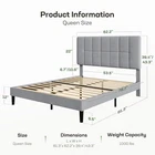 Menu 1. We require immediate payment. 2. We currently accept payment via eBay managed payments only. 3. Once payment is cleared, we will dispatch your shipment within 1-3 business days. Please refer to the "Shipping" tab for more information regarding shipping speed to your destination. Upholstered Platform Bed Frame, 1000 lbs Weight Capacity, Sturdy Queen Size Bed Frame with Space for Under-Bed Storage, Easy Assembly, No Box Spring Needed, Fits 8”-15” Mattresses Product description Wood & Metal & Fabric 2 Headboard Height Settings: Our queen size bed frame features a headboard with two height settings at 39.4″ and 43.3″ tall. Configure the headboard to match the style of your room or mattress thickness and throw pillow size, making this a versatile queen bed frame with headboard. Sturdy Construction: Two metal support beams and metal center rails ensure exceptional stability for up to 1000 lbs of weight. In addition to the strong bed frame, twelve wooden slats provide a reliable foundation for your mattress without the need for a box spring, delivering a solid queen bed frame. Noise-Free Comfort: Say goodbye to annoying bed squeaks with our sturdy platform bed frame. The secure design of the queen bed frame ensures firm connections without grinding metal. Simply pair the bed platform with an 8″-12″ mattress of your choice for tranquil, restful sleep. Extra Under-Bed Storage: With 6.3″ clearance under the side rails, you can store shoe boxes, storage bins, or other home essentials out of sight for a tidy, organized bedroom. The extra height also makes cleaning a breeze using a vacuum or broom, adding extra functionality to this queen bed frame with headboard. Easy Assembly: Detailed instructions and labeled hardware make installation a breeze, even if this is your first time assembling a queen size bed frame. Wooden slats are equipped with hook and loop strips for easy attachment to side rails. Bed Frame Dimensions: 81.3''×62.2''×39.4/43.3''. PLEASE MESSAGE US IF YOU HAVE ANY OTHER QUESTIONS, AND MANY THANKS FOR READING ALL OF THIS. Copyright ©#. All Rights Reserved.