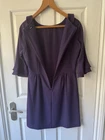 Used. Woman's. Oasis. Size UK 8 / EU 34. Short Dress. Scalloped Collar. Fluted Sleeve Cuffs. Bows at the waistline. Lined. Back Zipper Closure. I am also including a purple bead adjustable necklace. Measurements : Chest 36" / Length 33" (please see photographs). Fabric and care instructions : please see photographs. You pay what I pay for shipping