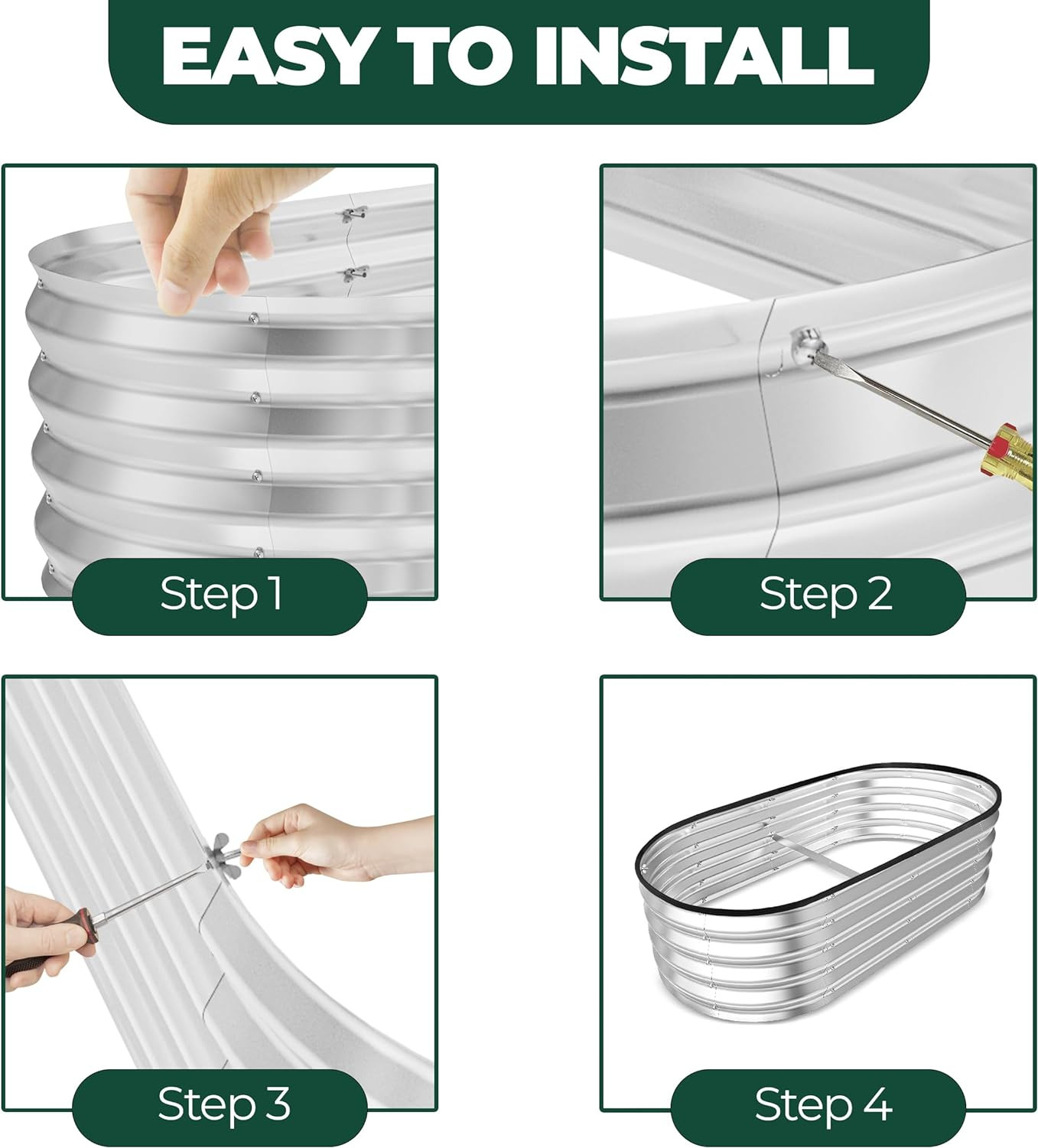 Utopia Home Galvanized Raised Garden Bed Kit 4x2x1ft, Planter 4 Ft, Silver Product Details Material: Alloy Steel Color: Silver Special Feature: Lightweight Style: Modern Planter Form: Raised Bed Shape: Oval Indoor/Outdoor Usage: Outdoor Mounting Type: Floor Standing Plant or Animal Product Type: Flower or Herb or Vegetable or Succulent or Bonsai or Fruit Product Dimensions: 48"D x 24"W x 12"H Brand: Utopia Home Number of Pieces: 1 Pattern: Solid Included Components: [PO] Plausible Options: Seeds, Coco Pellet Theme: Fruits and Vegetables Finish Type: Powder Coated Number of Levels: 1 Item Weight: 8.9 Pounds Size: 4 Ft Item Weight: 8.93 pounds Manufacturer: Utopia Home Country of Origin: China Item model number: UH1173 Raised Garden Bed - Add a new level of convenience to your gardening experience with the Galvanized Raised Garden Bed. Enjoy expanded yield and a more assembled garden layout with this garden accessory, each sized at 120 cm X 60 cm x 30 cm. Open Base Design - The open base design of the garden box let the plants' roots increase freely into the soil, gaining a broad nutrient system. Securing proper drainage, better ventilation, and healthier root systems for more lively plants and abundant harvests. Lightweight Galvanized Steel- The outdoor raised garden beds are made from lightweight galvanized steel, ensuring exceptional longevity and durability. Also, it prevents it from corrosion and rust, offering a long-lasting gardening solution. Moreover, the middle support strip provided exceptional strength to our lightweight Galvanized Raised Garden Bed. Easy To Install - Set up your garden bed in just a few minutes. With no complex tools or expertise needed, the lightweight galvanized-steel build allows for easy movement, making it easy to find an ideal spot for your garden. Care Instructions - Wiping the planter raised bed with a soft cloth and warm water to remove stains and soil particles is recommended. To eliminate any moisture, please wipe dry with a cloth and air dry.
