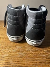 Step up your skateboarding game with these stylish VANS Sk8 Hi Skate sneakers. The black and gray colorblock pattern adds a touch of edginess to your outfit, while the lace-up closure ensures a secure fit. The rubber outsole provides excellent traction, making them perfect for cruising around town or hitting the skate park. These sneakers are designed for both men and women, with a Men's UK shoe size of 3 and a US shoe size of 4, Women's US 5.5. The suede upper material is comfortable and durable, and the VANS Sk8 model is a classic that will never go out of style. Whether you're a seasoned skater or just starting out, these sneakers are a great addition to your collection.